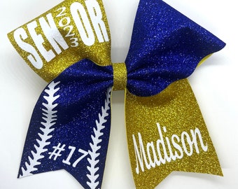 Softball Hair Bow Customized With Your Team Or School Colors In Glitter Font 7 5 Inches Long